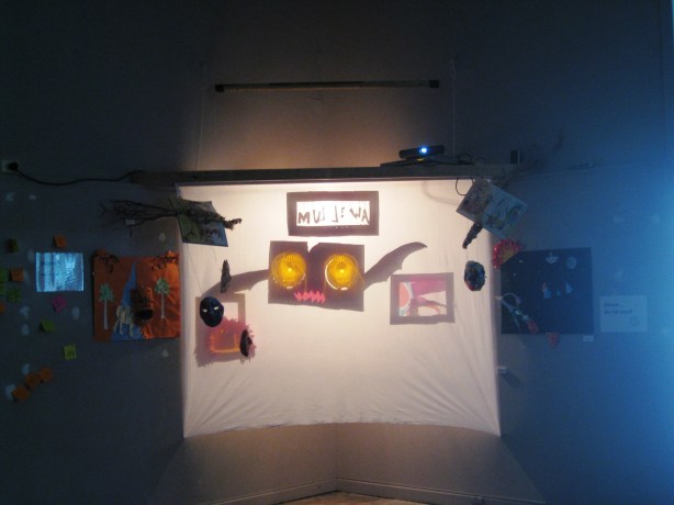 In November the project culminated in an exhibition as part of the AWESOME International Arts Festival for Bright Young Things! I curated the exhibition and it included a compilation of art works from all 10 residencies. Listening stations, DVD projection, a reading area and even a chalkboard storytelling station filled the space and invited guests to engage with the stories these amazing kids created during the project.